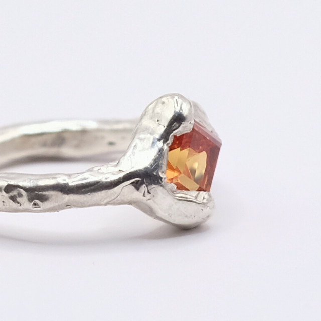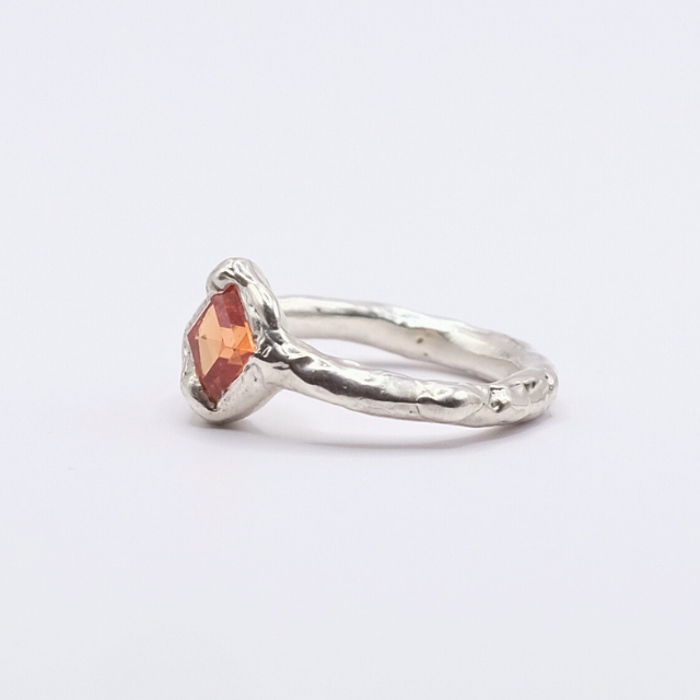 Material: 925 Sterling Silber, Synth. Padparadscha Sapir im carre step cut 6x6mm